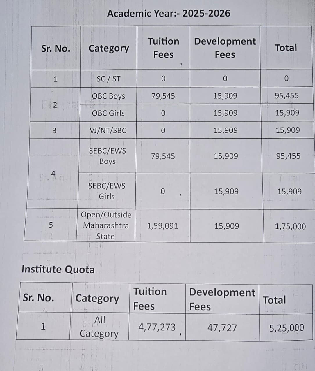 | Sr. No. | Category | Academic Year 2025-2026 | ||